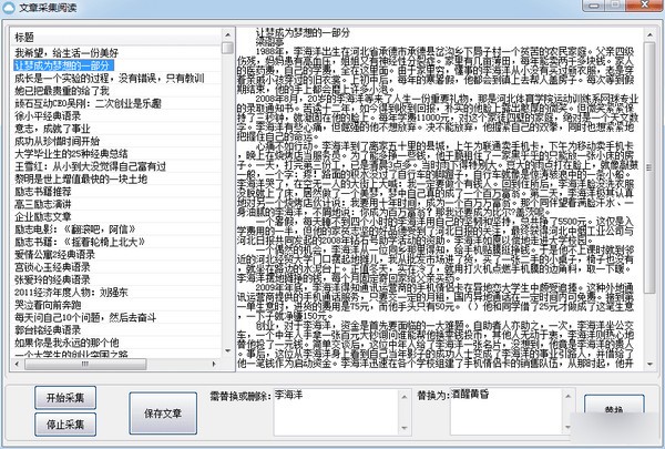 文章采集阅读软件是一款文章采集软件,采用E语言写的程序,不仅可以采集文本也可以简单的替换一些文本,或者添加文本!