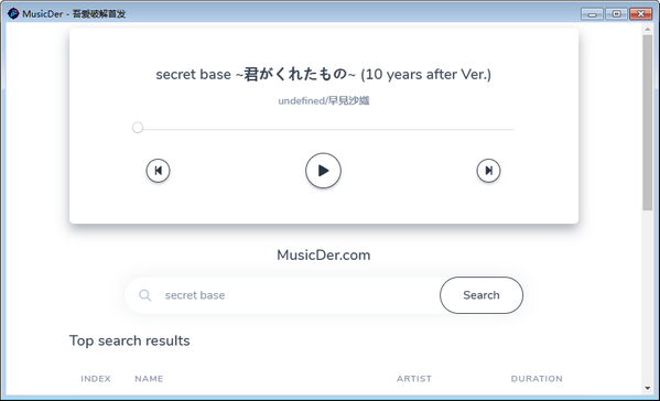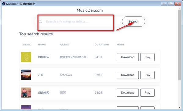 MusicDer(全网音乐下载工具)是一款能够支持全网音乐播放和下载的软件,软件使用起来非常简单,能够找到全网大部分音乐歌曲在线播放或者直接下载到本地,有需要的可以下载使用。