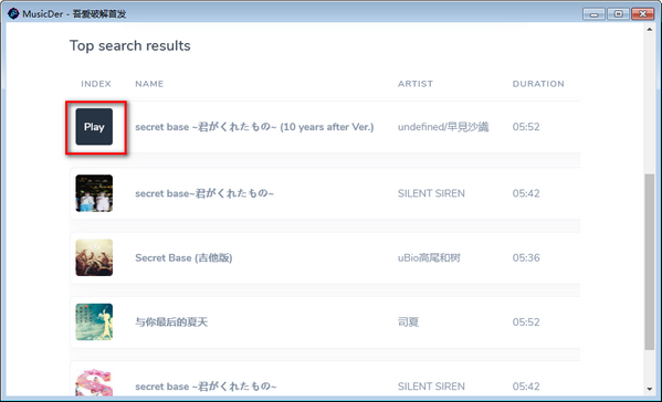 二、搜索完成后点击歌曲的头像即可在线播放。
