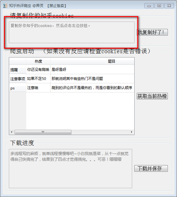 一、首先登录自己的知乎,按F12获取COOKIES,复制到软件最上方的输入栏。
