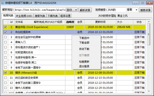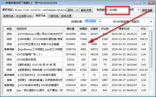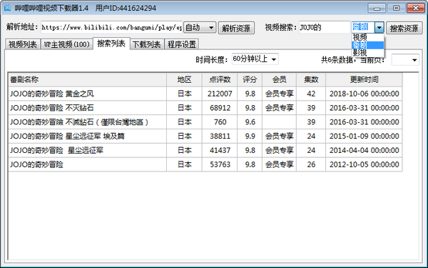 二、用户可以选择自己复制链接去搜索某个UP的视频进行批量下载,也可以直接搜索。