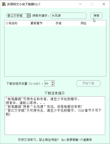 采用多进程+多协程的方式实现小说的在线搜索、下载及合并,下载的内容在软件当前运行目录下,包括合并的txt和另外一个保存分章节的文件夹(非程序员,大神请飘过,创作不易,请勿做伸手党,回复也是对作者的最大支持!所以,不要白嫖!不要白嫖!不要白嫖!)。
