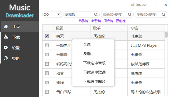 支持多个平台的热歌榜、新歌榜、飙升榜、原创榜音乐下载