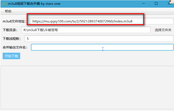 在程序输入获得的m3u8文件的在线地址,之后,软件会通过此地址进行下载m3u8文件、key文件(如果有加密的haunted)和ts文件,并进行解密合并,最后会输出一个mp4格式的文件。