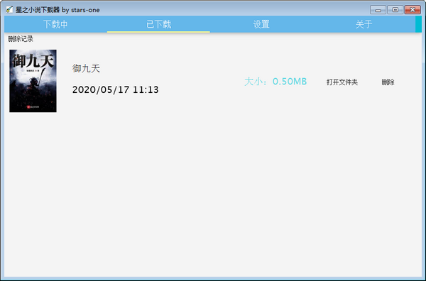 二、下载完的小说在已下载界面可以进行删除或者打开操作。