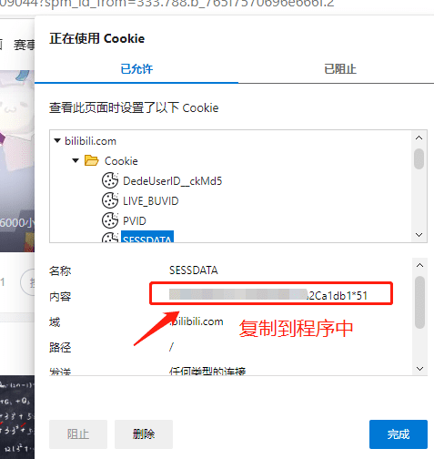 四、找到sessdata,将这一段内容复制到软件中即可。