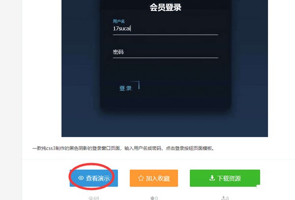 17素材免积分下前端模板器,可以直接通过“查看演示”的方式把模版内容下载到本地,无需一个一个手动去保存,省心省力!