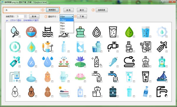 透明背景pngico图标下载工具,功能是搜索和批量下载透明背景的PNG、ICO图标,可用于个人开发的原创工具、网站Logo。