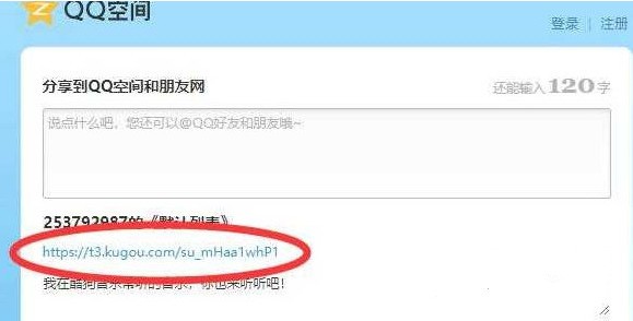 1、将自己需要下载的歌放进一个列表->分享列表->选择qq空间分享->复制qq空间上的分享的酷狗链接