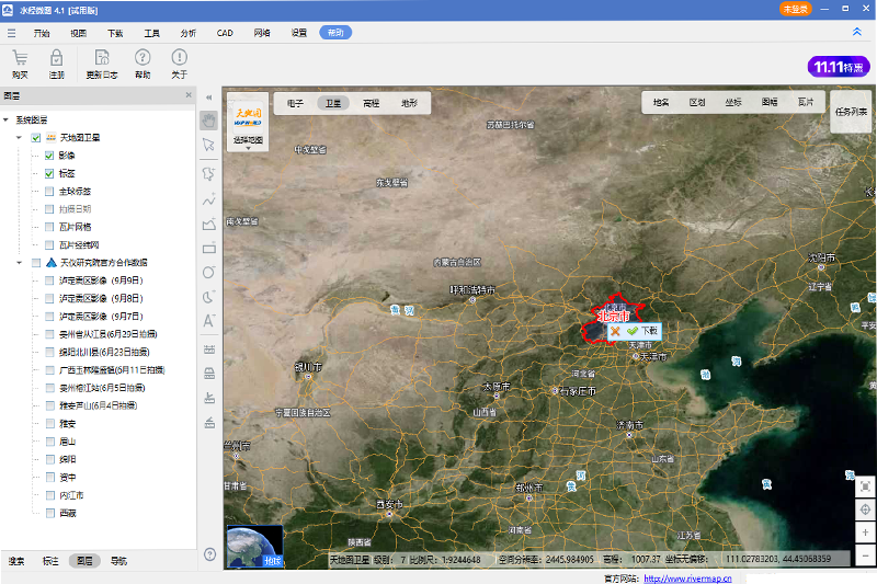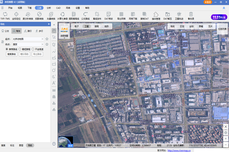 一个支持加载全球在线卫星影像的CAD绘图功能模块