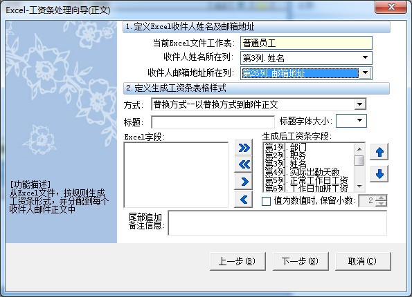 适用场景:与Excel-工资条处理向导(附件)类似,区别在于以邮件正文方式发送邮件工资条。