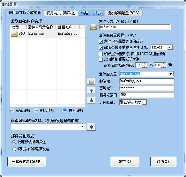 GoGoMail是由Kafox小组开发的国产邮件发送软件,其主要目的是为了改善并提高办公人员对邮件发送的工作效率, 使其从繁琐、枯燥的邮件发送中解脱出来。它是一套集邮件群发分发为主要功能的软件,其内置的助手向导,包括附件分配向导 、Excel-内容分配向导、Excel-工资条处理向导(附件)、Excel-工资条处理向导(正文)、Excel-工资条处理向导(HTML)、Excel-文件分割向导、 Excel-文件合并向导、Excel-工作表分割向导、Excel-工作表合并向导、CSV格式-文件分割向导、数据获取助手,可帮助您快速处理邮件、 处理Excel文件、发送重复邮件,提高发送邮件工作的效率。软件适合人力、财务部门发送工资条、销售部门分发邮件通知、分发不同附件, 分割Excel文件等,也适用于邮件营销,数据获取助手可从其他软件获取相关数据(如从QQ查找好友中获得邮箱等),文件监控发送功能实现针对 指定目录进行监控自动发送。