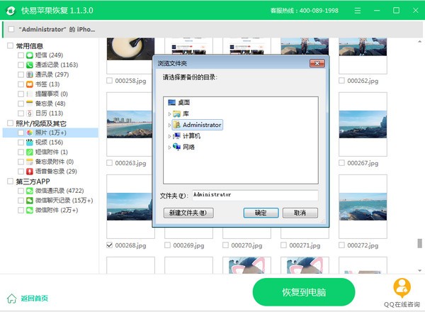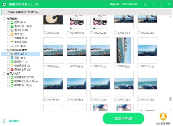 六、恢复数据:勾选所需要的数据,点击“恢复到电脑”按钮进行恢复。