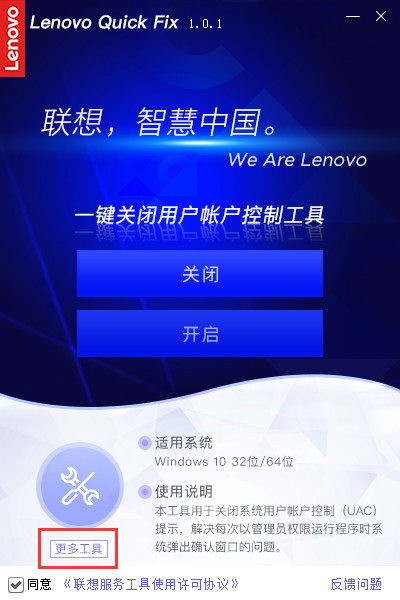 联想一键关闭用户帐户控制工具用于关闭系统用户帐户控制(UAC)提示,解决每次以管理员权限运行程序时系统弹出确认窗口的问题。有需要的用户可以下载。