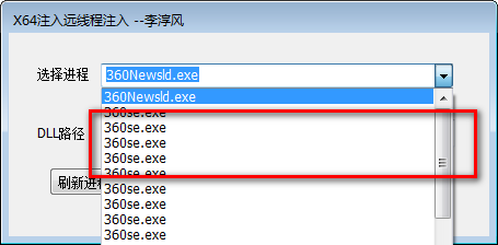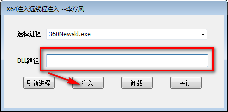 使用说明:选择进程,拖入要注入的dll文件 获取到路径,点击注入即可