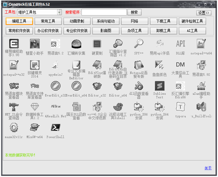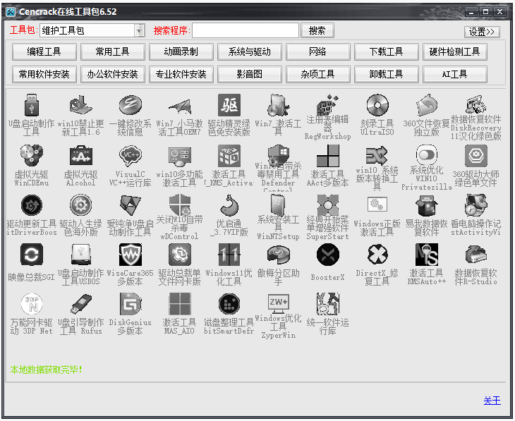 该工具包包含系统工具、网络工具、磁盘工具、编程工具、图形图像工具、音频视频工具、文件应对工具等多个方面的工具,满足了客户的不同需求。
