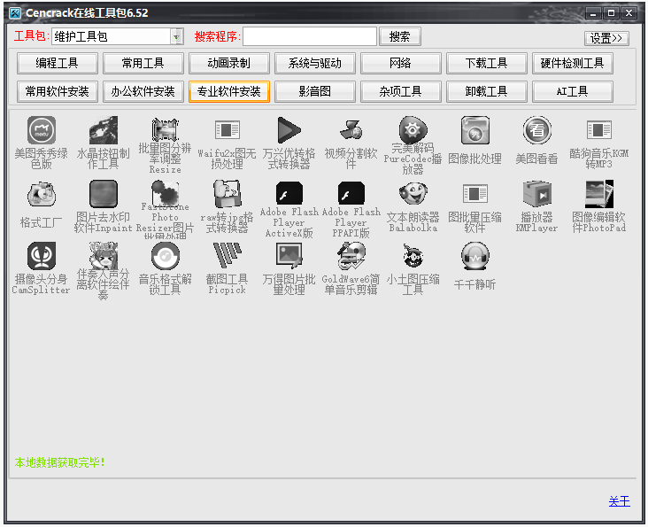 集成了多种常用软件工具,无需分别下载和安装,大大节省了时间成本。