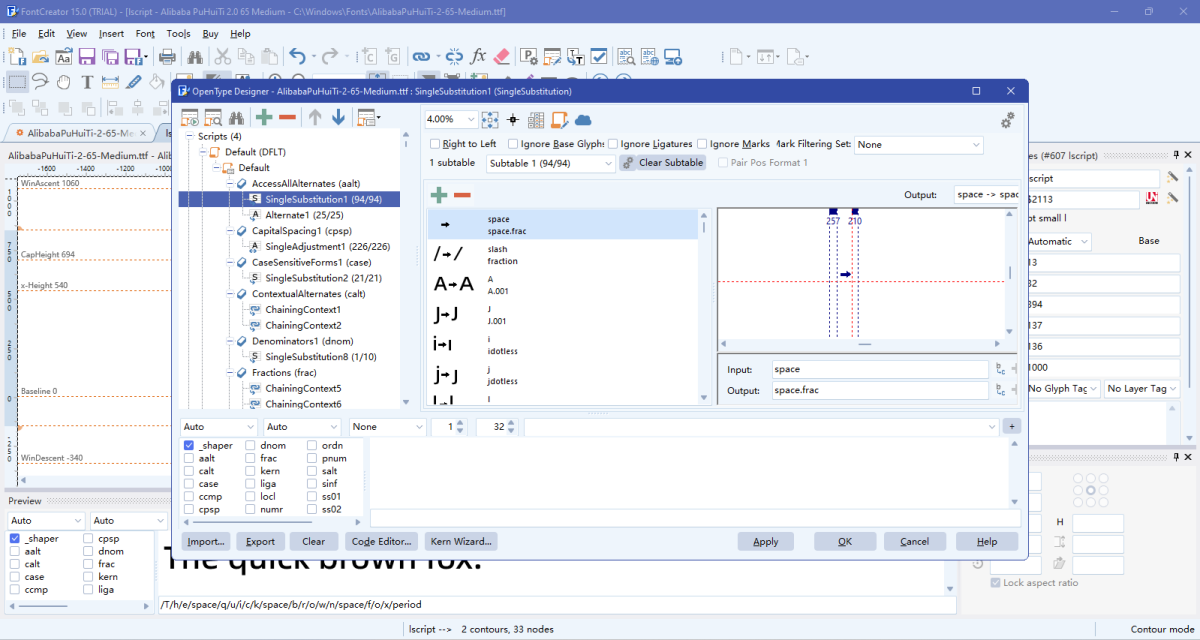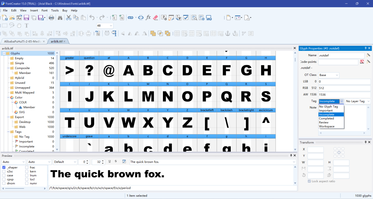 使用 FontCreator 的交互式校对工具来调试 OpenType 布局特性。它采用先进的字形造形引擎,使您能够查看、创建、编辑和调试即使是最复杂的字体。