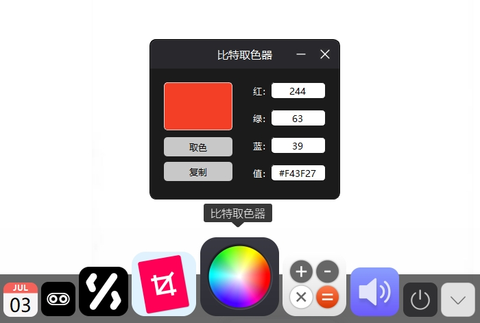 万千色彩皆可取。它不仅仅能完成取色,他还能放大显示当前色值。可直接获得RGB色号,一键拷贝进行粘贴即可,非常方便UI设计。