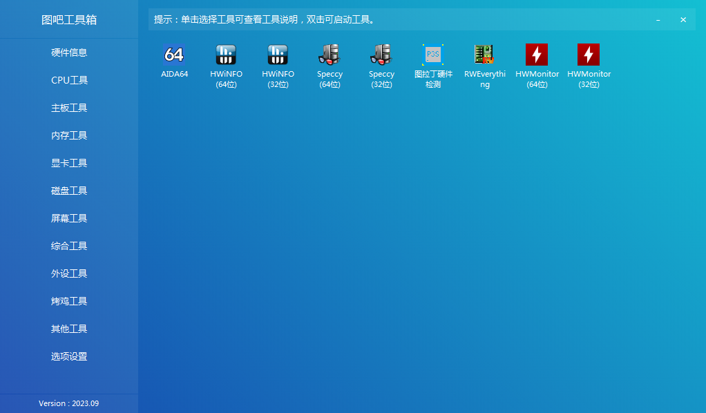 图吧工具箱是一款非常优秀的系统优化软件,软件汇聚了硬件信息、CPU工具、内存工具、显卡工具、硬盘工具、屏幕工具、综合检测、外设工具、拷机工具等十几类上百个硬件检测工具。图吧工具箱官方版是用户进行软件检测的最好帮手,是一款非常实用的软件。