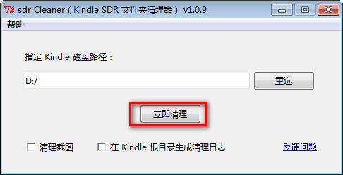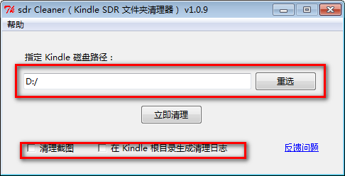 2、运行 sdr-Cleaner,软件会自动检测到 Kindle 磁盘(未检测到请手动选择);