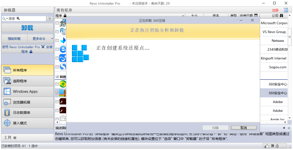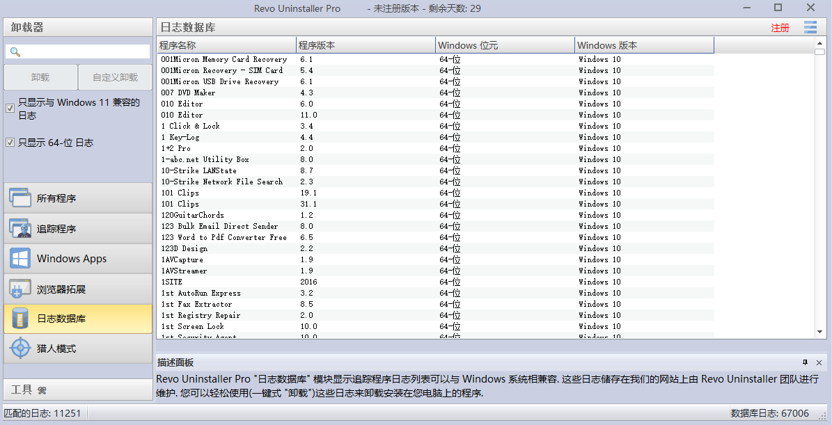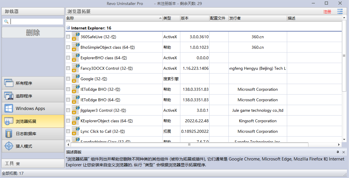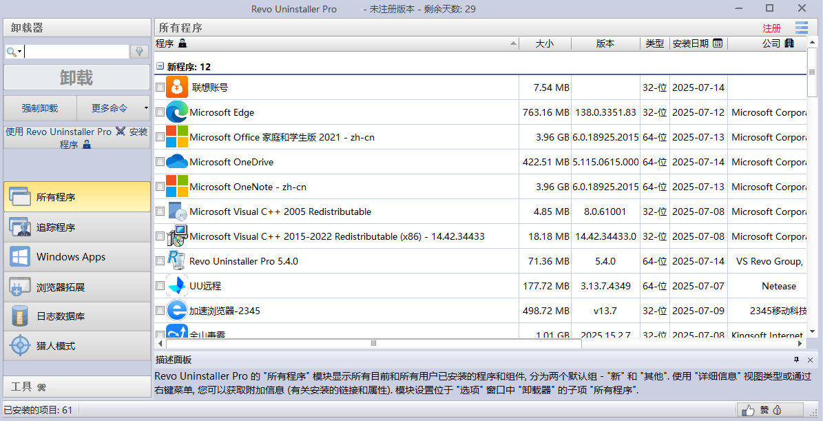 Revo Uninstaller是一个软件卸载工具。能够代替Windows系统中的"添加/删除程序" ,除此之外,它还包括其它一些实用的功能。例如:能够帮助你清除系统中的垃圾文件,无用的Office临时文件,上网记录,系统启动项管理等.