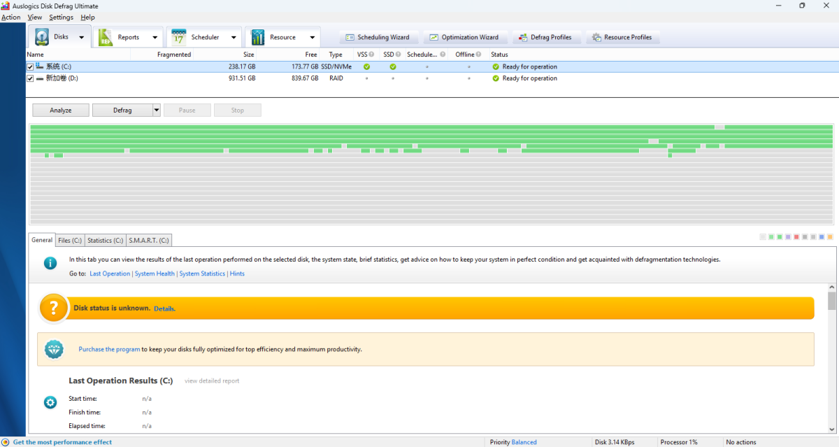 Auslogics Disk Defrag Ultimate是一款专业磁盘整理工具,提供智能优化技术,高效地进行碎片整理,让你可以完全控制硬盘,优化硬盘以实现最大速度和可靠性,非常适合高级用户使用。