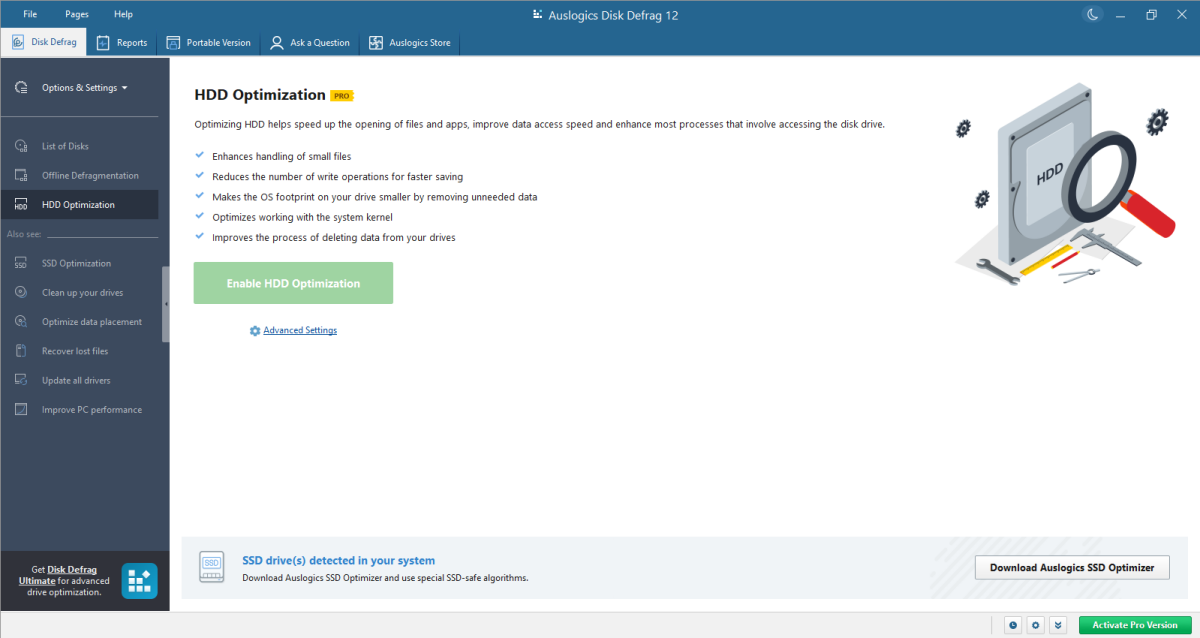 Auslogics Disk Defrag最大限度地减少了VSS存储区域的增长,并降低了覆盖以前VSS快照的机会。可以设置为在计算机空闲15分钟后自动开始碎片整理。这种碎片整理工具旨在快速优化当今的现代硬盘。从昂贵的硬件投资中获得最大的性能。可以通过仅对必要文件进行碎片整理来节省您的时间,而不是对整个硬盘进行碎片整理。Auslogics Disk Defrag不仅仅是一个碎片整理程序,而是一个功能齐全的磁盘优化器。凭借磁盘优化的所有先进技术,磁盘碎片整理仍然非常紧凑,更易于使用!