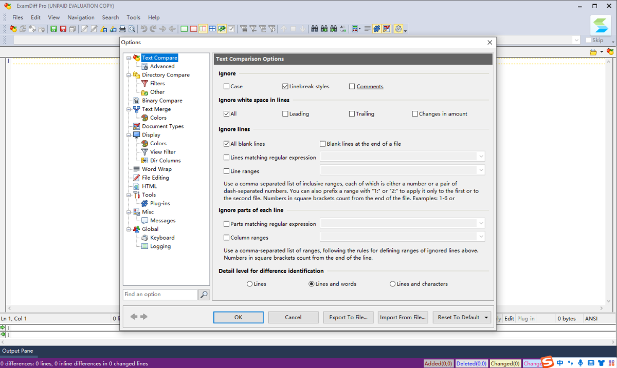 ExamDiff能让使用者快速比对两个文字文件的相异之处,并以不同的颜色及指标标示出来,除了可以自定颜色,还能快速呼叫惯用的文字编辑器来编辑文件内容。不但功能实用、中英文相兼容。
