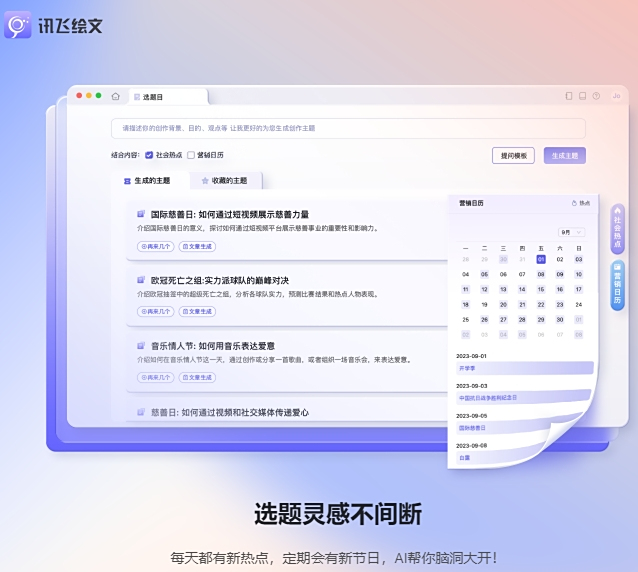 2、选题灵感不间断:每天都有新热点,定期会有新节日,AI帮你脑洞大开!