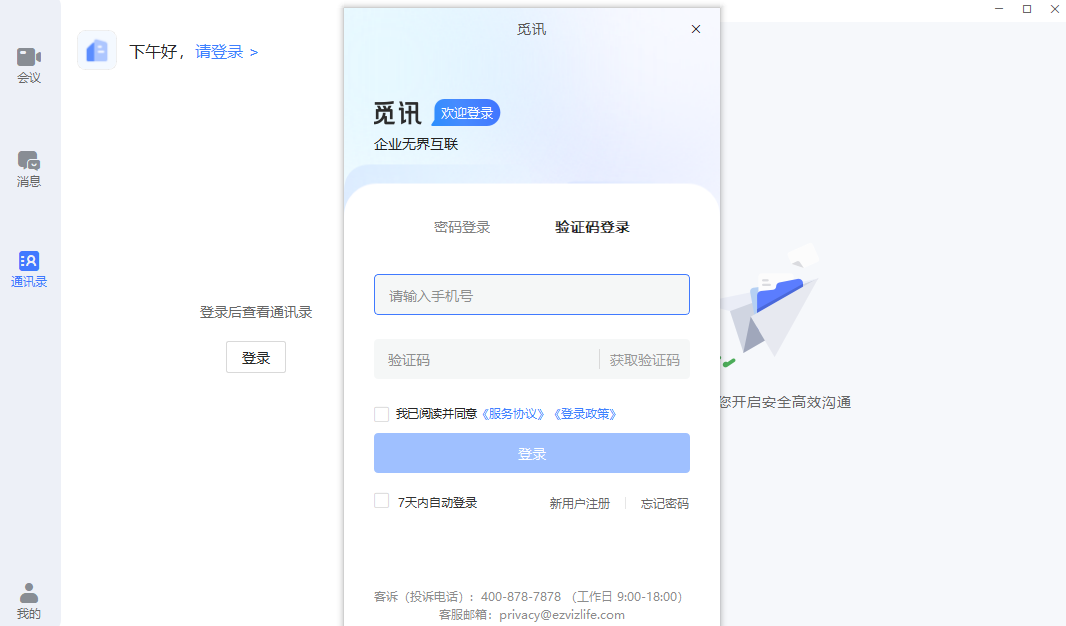 觅讯(原名萤石易联),提供永久免费视频会议基础功能,免费多人音视频通话、联席主持人、屏幕共享、实时聊天、多端入会、会议密码、会议水印等功能;免费云会议能力,不限时,不限人数。