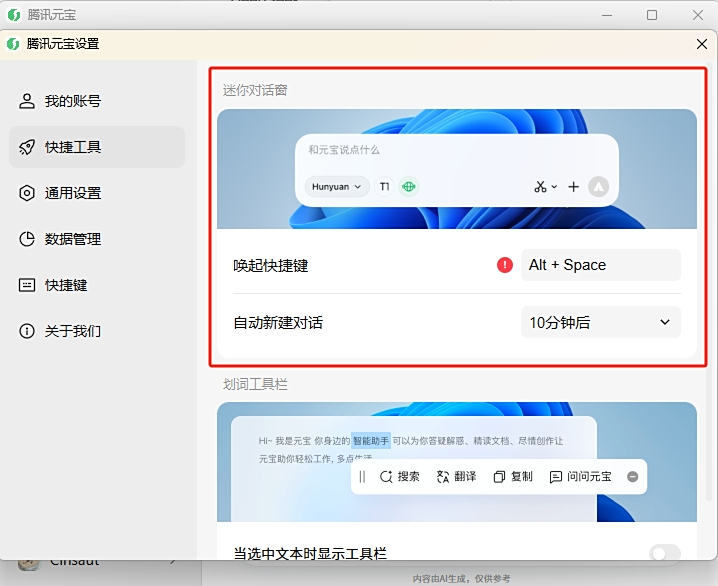3、AI划词,快捷搜索:支持AI划词搜索、翻译,什么都能问元宝