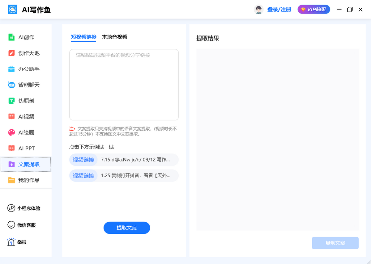 9、文案提取:支持短视频链接和本地音视频提取。