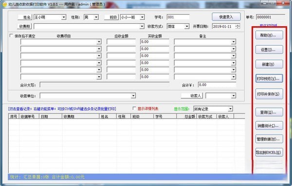 3、收据记录可保存、修改、删除、查询统计等管理操作