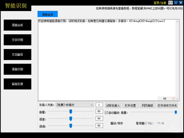 智能识别是一款功能强大,专业实用的优秀语音识别软件。该软件操作简单,为用户提供了语音合成、语音识别、图片识别、翻译、图片处理,是您不可多得的好帮手。