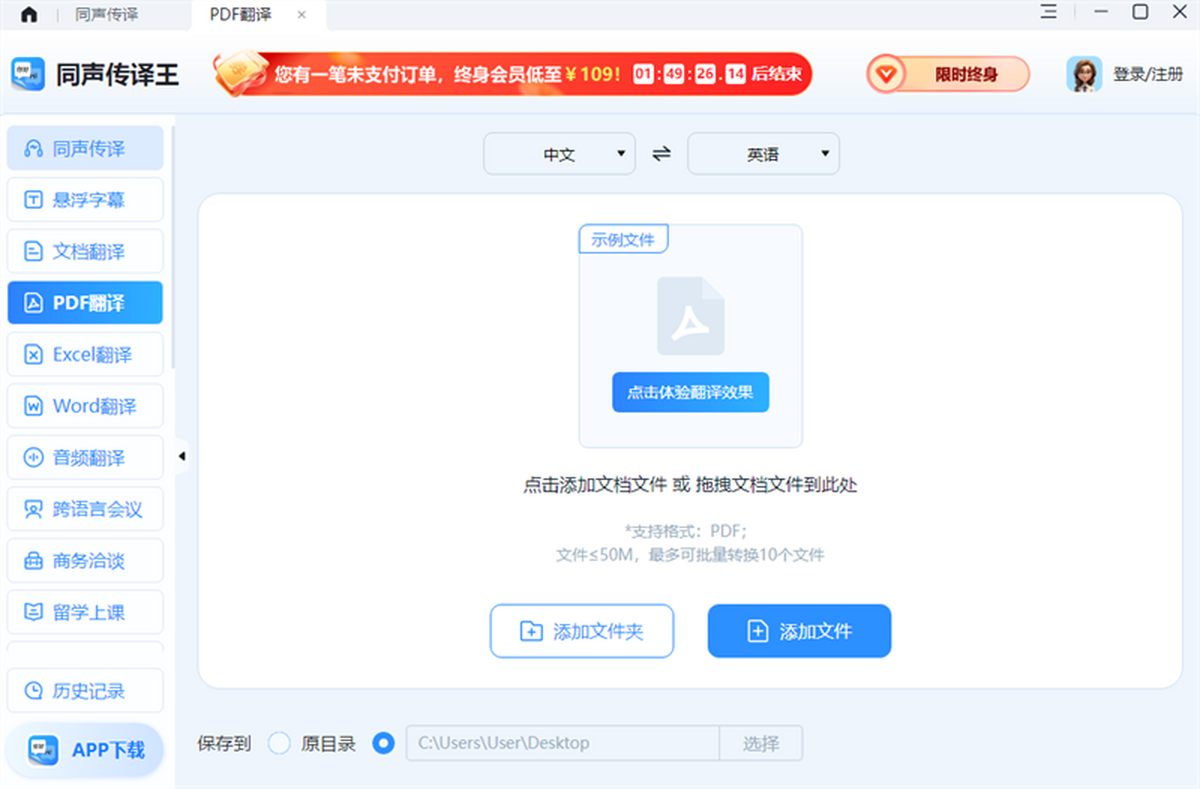 同声传译王软件支持多格式音频、视频、文档翻译功能,帮助您快速准确地完成各类翻译需求。
