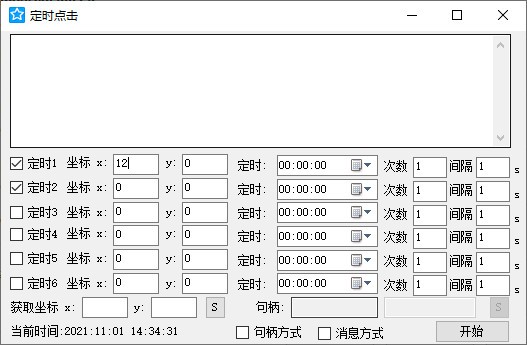 未勾选消息模式时,默认鼠标模式,通过api移动鼠标到输入的坐标点进行点击。