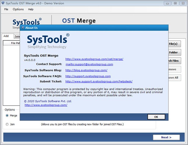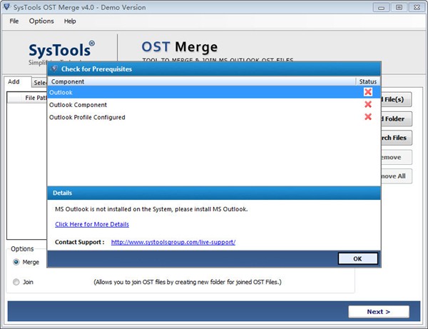 SysTools OST Merge(文件合并工具)是一款非常不错的文件合并软件,这款软件可以将ost格式的文件进行快速合并,通过简单的几步即可完成此操作,用户将文件导入之后,选择合并方式及其他内容即可导出所需文件,对于经常使用Outlook的用户而言,这个软件能够节省极大的时间精力。