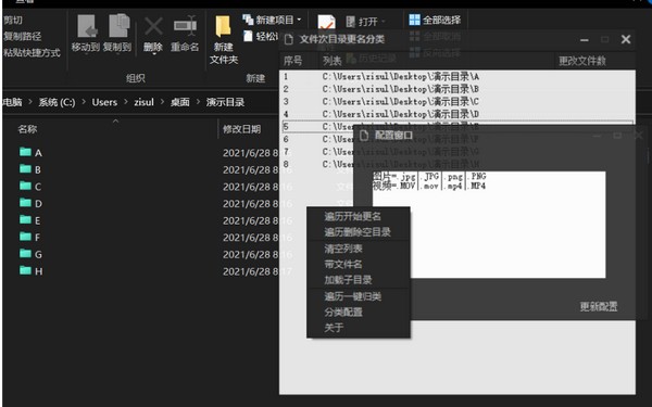 因为我没有点更新配置,所以只是以扩展名分类,如果添加了配置并且保存更新,将会以自定义文件名分类。