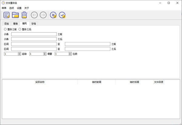 文件重命名(FileRename)是一款基于QT5.12的文件批量重命名工具,文件名称添加字符串、替换字符串、进行编号、字母大小写等功能!