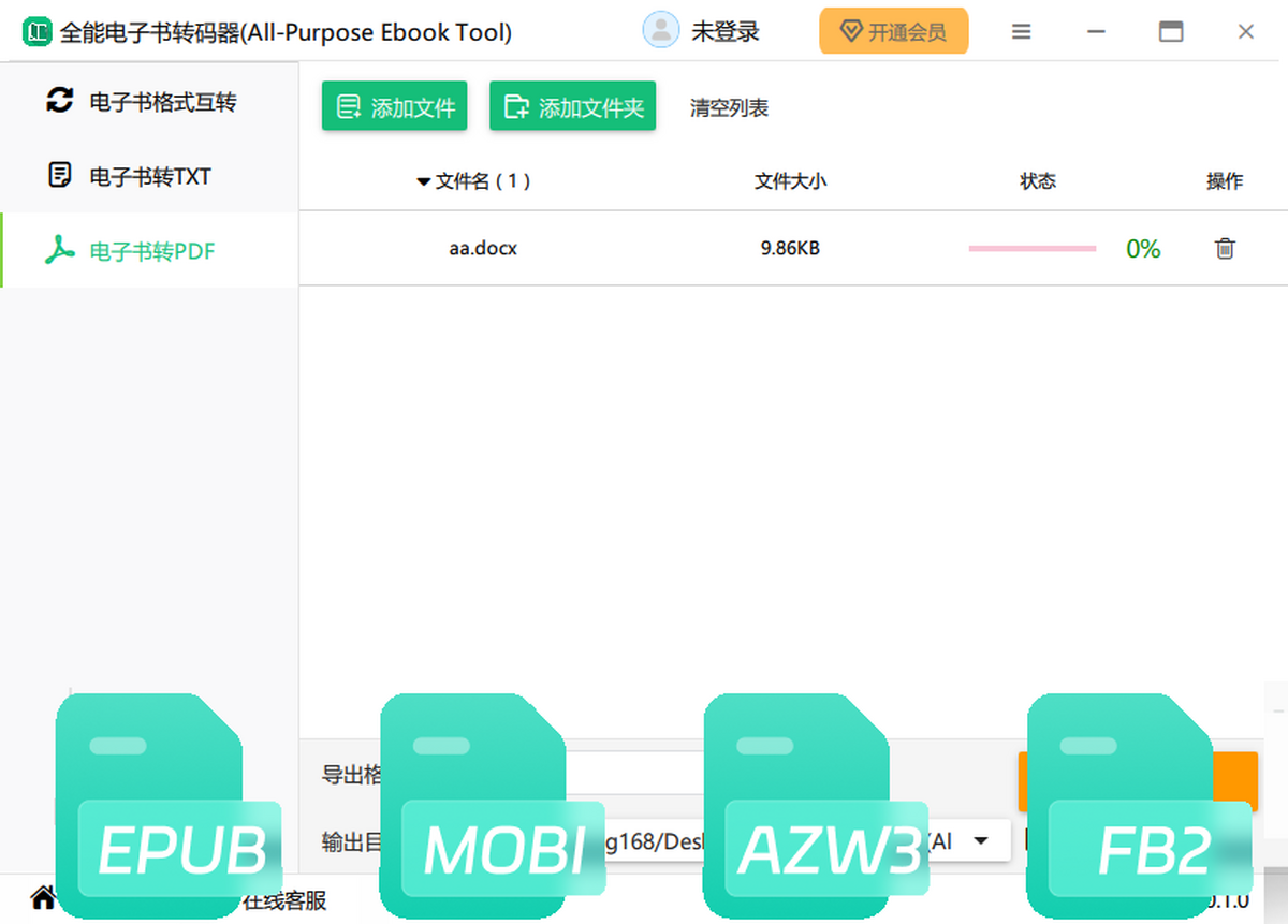 全能电子书转码器(All Purpose Ebook Tool)支持将azw3、mobi、pdf、txt、word、EPUB等格式的电子书相互转换,文件在转换后依旧可以保持原文件的排版,处理速度快,质量好,一键完成电子书格式转换需求。