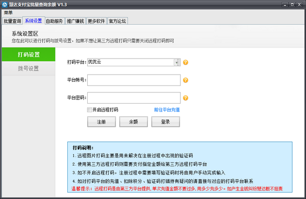 慧达支付宝批量查询余额是一款支持小号余额查询的软件,专门管理支付宝小号,软件查询方便快捷,不仅省时间,还可以进行分类,如此查询的时候能够更加的快速。