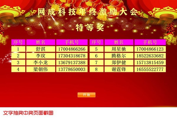 支持由数字、字母、中文汉字混合的姓名、手机号、身份证号等各种名单;支持图片照片抽奖;