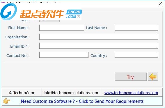 3、在这儿键入客户的名字和消费者的信息内容,这儿的数据信息都必须键入,点一下TRY试着运行软件