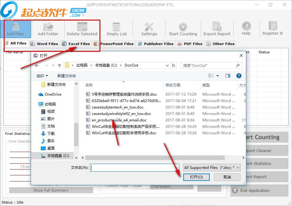 5、总而言之,只需是办公室文件和网页制作的文字文件,全是可以增加到这一款软件上统计篇幅的