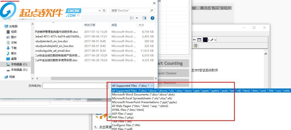 7、本软件适用的文件格式是十分丰富的,您可以将如图所示中产生的文本格式所有加载到本软件上,包含doc、xls、HTML、CSV